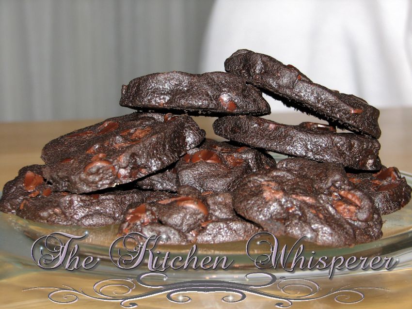 These cookies are the TRUE test of a chocoholic! Most of you love chocolate and some of you LOOOOOOOOOOVE chocolate but I’m telling you, these cookies will push you to the edge of Chocolate-dom! They aren’t quadruple loaded with chocolate or have 57 types of chips in it. It’s a simple recipe but the chocolate flavor is so ridiculously insane that it makes you step back and go “Whoa!” I’ve been only able to eat a 1/2 a cookie at a time and actually had to save the rest for later because they are that rich and decadent!